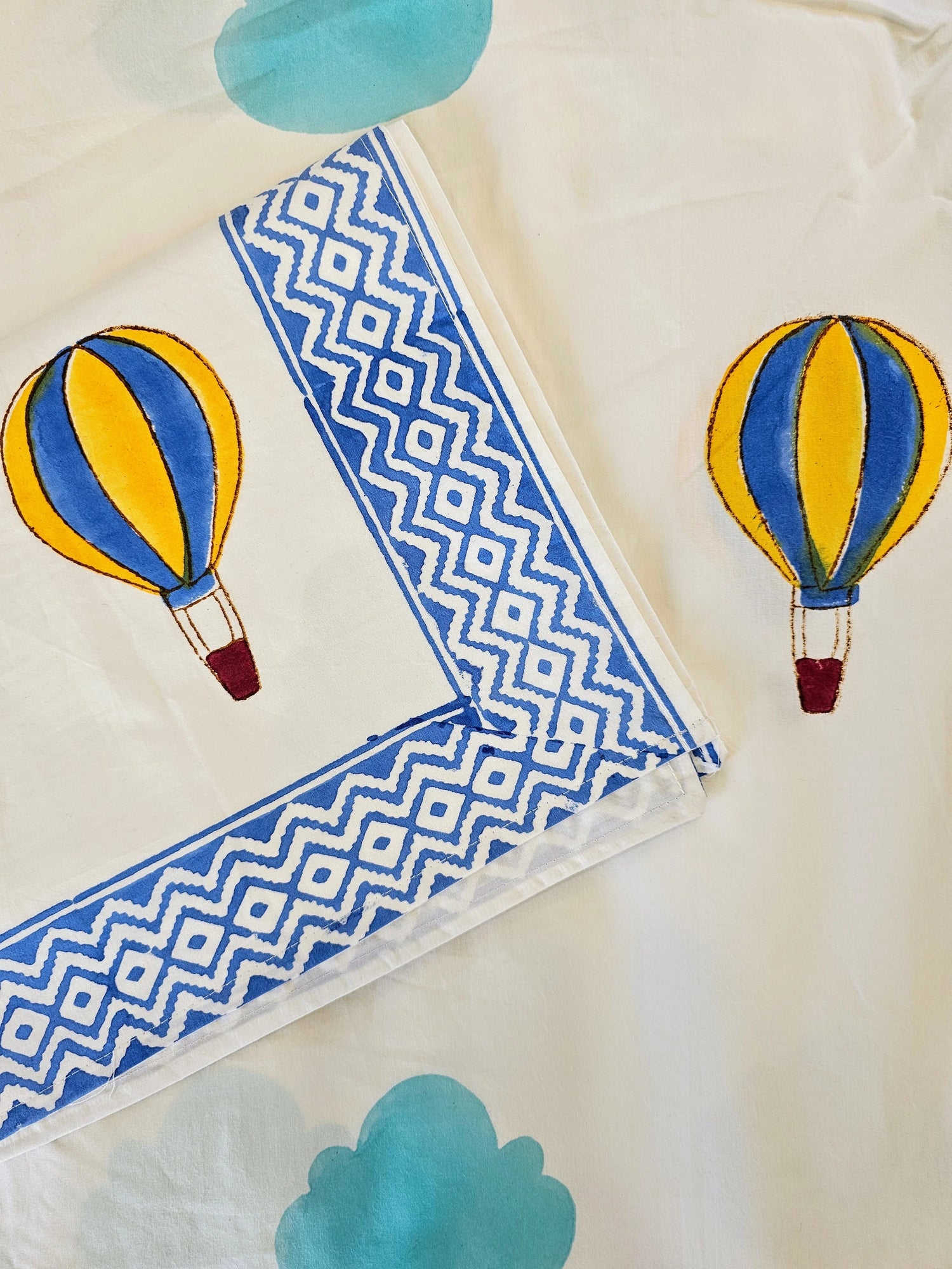 Blue & Yellow Floral Handmade Block Printed Bedsheet (Fitted)